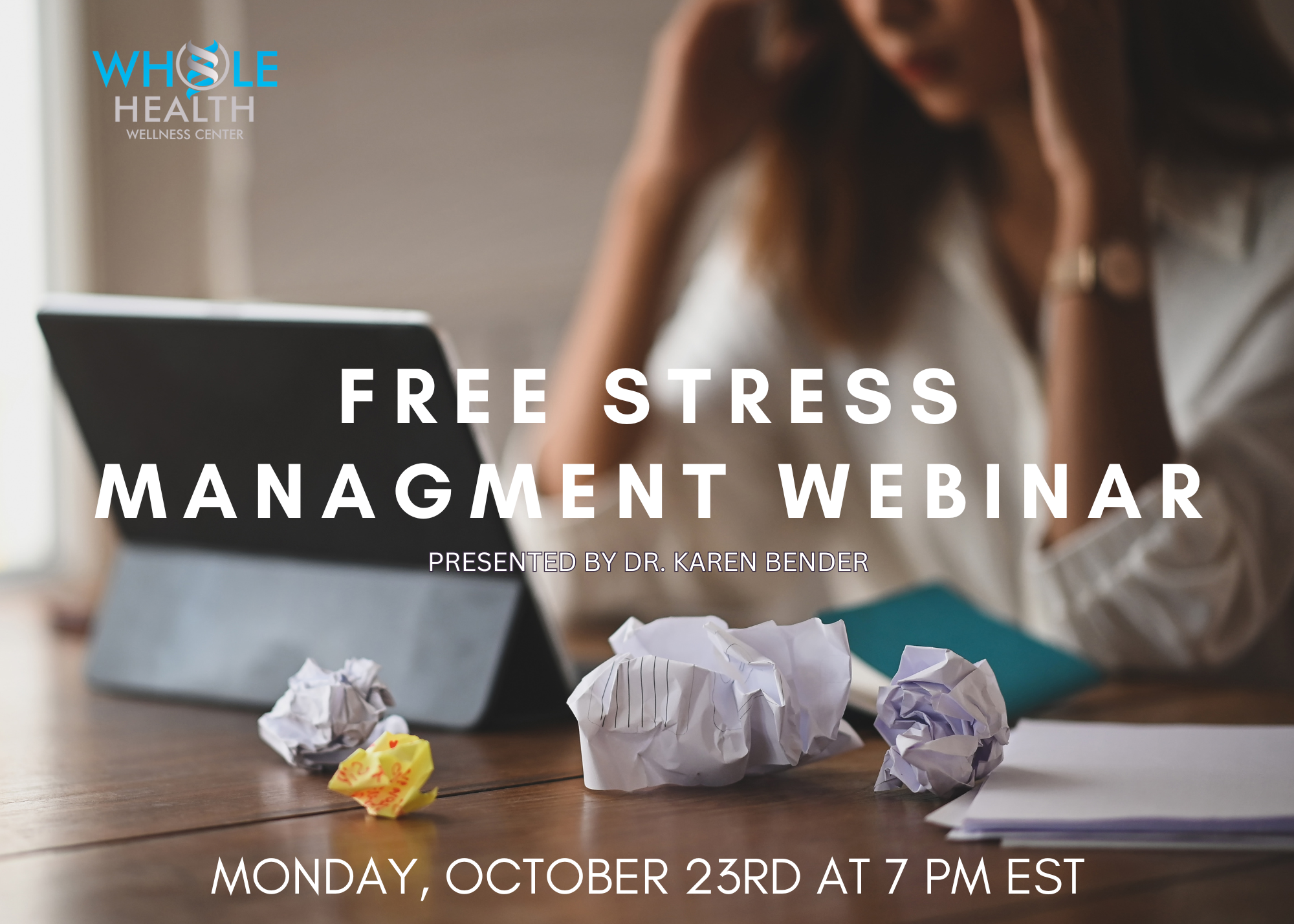 Join Dr. Karen Bender on Monday, October 23rd at 7 PM EST for Happiness Hacks: Simple Stress Management Strategies, a free webinar presented by Whole Health Wellness Center.