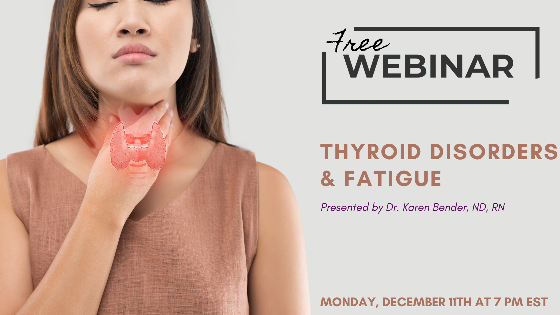 Are you struggling with fatigue and abnormal weight gain? Your thyroid may be the reason. Join Dr. Karen Bender on Monday, December 11th at 7 PM EST for Thyroid Disorders & Fatigue, a free webinar presented by Whole Health Wellness Center.