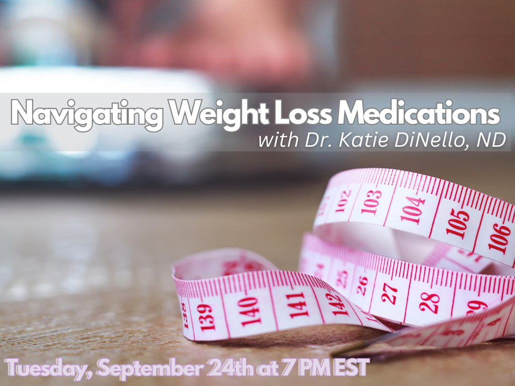 How do these medications work and what is the naturopathic protocol for maintaining muscle and navigating side effects? Dr. Katie DiNello, ND does a deep dive into the world of navigating weight loss medications during her informative webinar on Tuesday, September 24th at 7 PM EST.